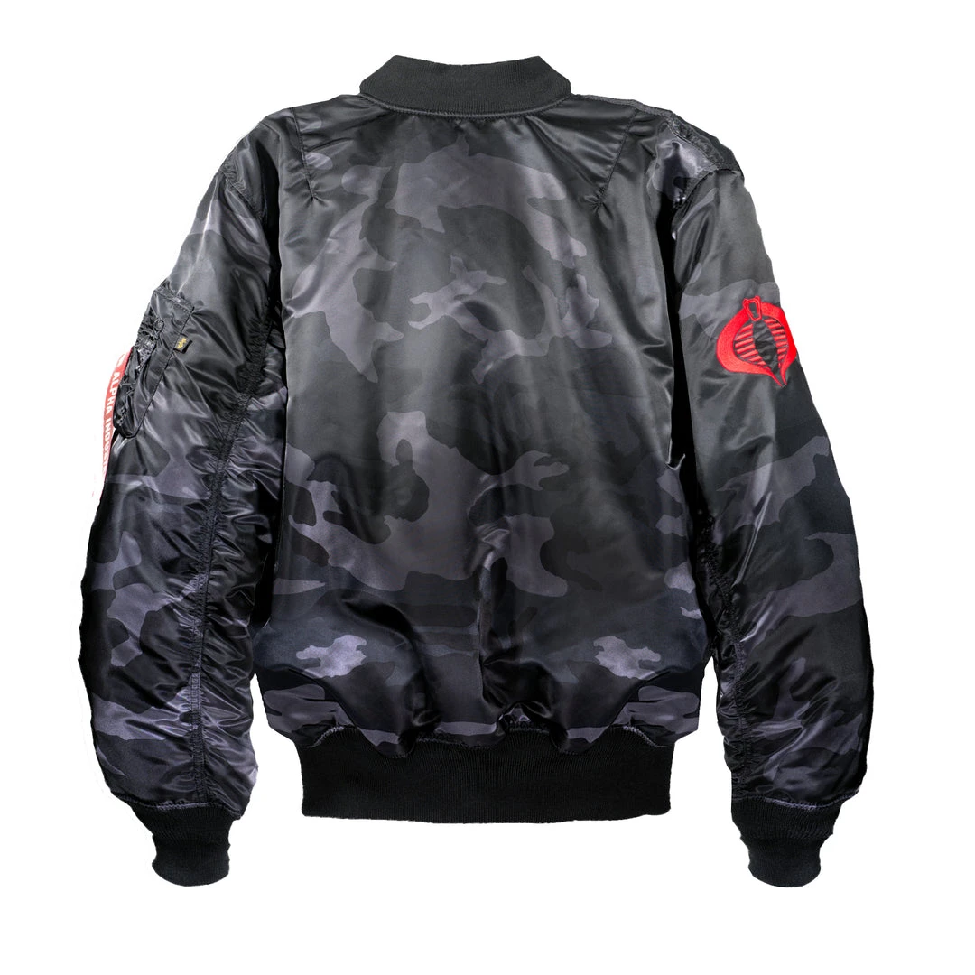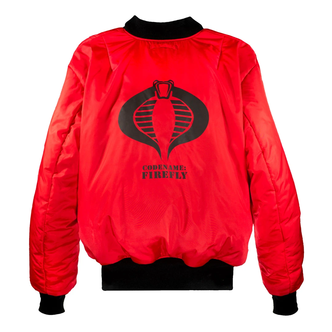 To be one of Cobraβs best saboteurs, Firefly has to be ready to switch from slinking in the shadows to unleashing destruction and chaos at a momentβs notice. The limited edition Super7 x Alpha Industries G.I. Joe reversible Firefly bomber jacket is here to give your wardrobe similar versatility. This water resistant bomber jacket features flight nylon with black woodland camo design on one side for low-key situations but can be turned inside out to reveal a high-impact red color scheme for situations requiring a bolder statement. Based on Alpha Industries iconic MA-1 bomber jacket, this limited edition sports multiple Cobra insignia and removable hook & loop name patch, leaving little doubt that its wearer is one serious operator.
