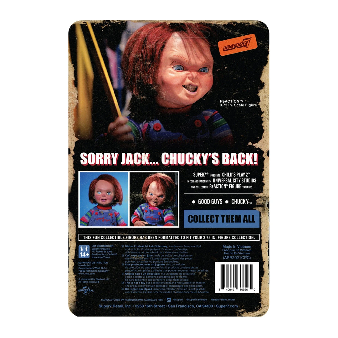 From now on, no more Mr. Good Guy. This Childβs Play 2 Chucky 3.75β ReAction Figure is equipped with his bloody knife, and heβs got a new game, sport. Collect both Chucky ReAction Figures this Halloween!