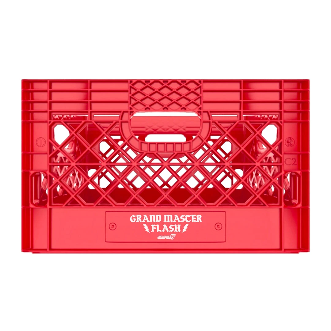 The Super7 limited edition Grandmaster Flash Capsule Collection comes loaded with a literal crate-full of fresh merch that pays homage to the early days of the Hip-Hop pioneerβs career, when he hauled all of his records and gear to gigs in milk crates. In addition to the 3.75β Grandmaster Flash ReAction figure, this capsule collection includes a custom bright red milk crate featuring the Grandmaster Flash logo, a black crewneck sweatshirt inspired by his iconic handmade jacket (as seen in Wild Style) with printing on the front chest and back, and a pair of DJ slipmats packaged in a branded LP sleeve, all bundled inside a crate-themed cardboard box to keep your Grandmaster Flash essentials safe and scratch-free. This limited edition capsule collection is sure to sell out in a Flash, so get yours while you can!