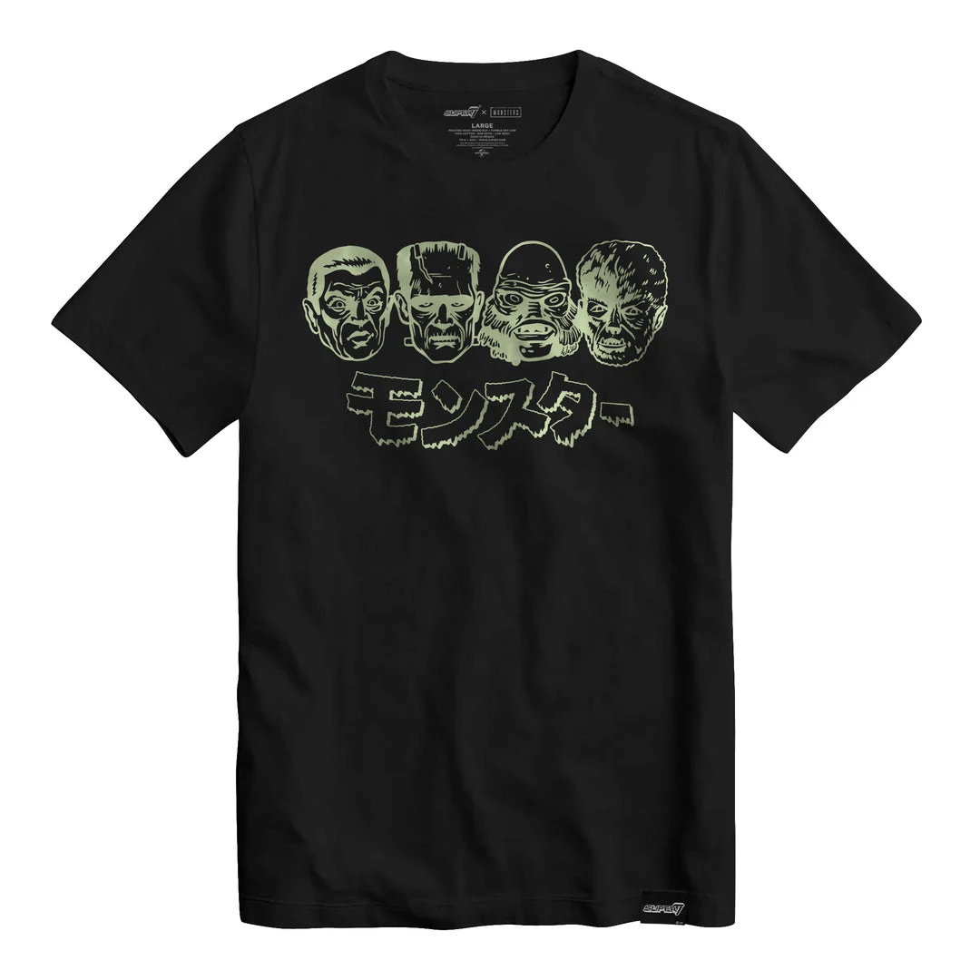 Scary things lurk in the dark! The Super7 Monsters T-Shirt features screen printed GLOW-IN-THE-DARK art. Printed on a SpectraUSA 3100 premium blank with shoulder to shoulder self jersey neck tape, double needle bottom and sleeve hems, and seamless sides. Available in unisex sizes SM – 3X with Super7 hem tag. Tee color: Black. Short sleeve 100% pre-shrunk, ring-spun cotton. Machine wash / tumble dry.