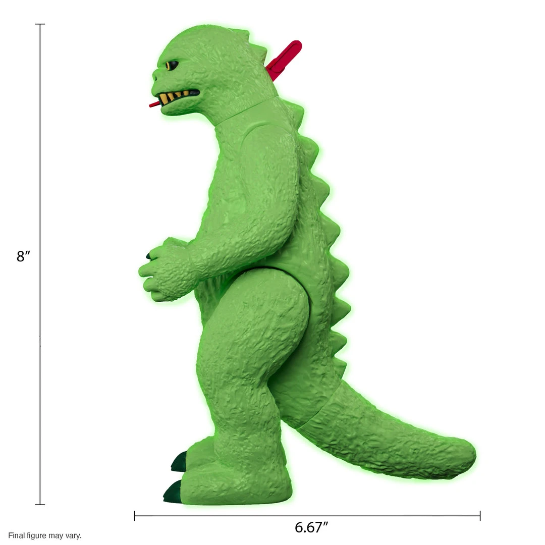 Just when you thought it was safe to go to sleep, a monster emerges from the darkness! A glow-in-the-dark twist on the classic Shogun Godzilla! Standing 8” tall, this made-to-order ULTIMATES! Shogun Godzilla figure comes in glow-in-the-dark green and is complete with its spring-loaded lever-action tongue and push-button firing fist, just like the vintage toy! Lock in your pre-order for the glow-in-the-dark ULTIMATES! Shogun Godzilla figure, sure to be the shining star of any Kaiju collection!